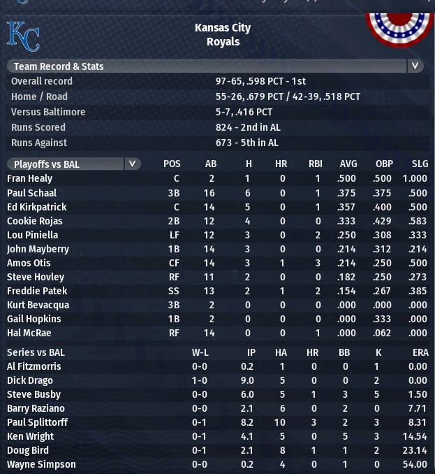 MLB 73: Oct. 2 -- Kansas City Royals regular-season statistics
