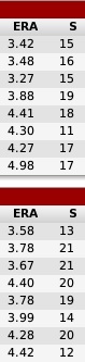 Monday, June 1, 2037 TIGHT RACE IN RU WEST, SLIGO SLIGHT LEAD The Ruthlandian West Division is one of the weaker divisions in the IPA, but it is always pretty competitive within... this year only the top two clubs have winning records... the Sligo Rovers have a one-game edge over preseason pick Fort Benton... in third place trailing by 4 games are Rocky Rapids and Forest City... last year's winner Colfax is tied with Middlefield for fifth and is 6 games out of first... even seventh place Volusia and last place Stoner are within striking distance and are only 8 games off the pace. A two-team race was forecast and that's pretty much what's happening... only Sligo (28-24) and Fort Benton look like they will have winning seasons... Sligo had a solid May with a 16-12 mark to move up to first place ahead of Fort Benton, who slumped to 13-15... the Rovers are just an average team in the Ruthlandian Union, but they can score fairly well (11th) and have a little firepower with 61 HRs (6th)... Randall Steele (6-5/3.69) and Tom Pierson (4-3/3.95) are pretty good starters... newcomer Jeff Cooper (3-5/5.25) has been a disappointment... he has to have a good second half for the Rovers to win... Sligo has no big-time bats... the best ones are Denny Simmons (.304), Neil Mitchell (.302), Peder Svensson (.287) and Vasco Aguilar (.301). The Fort Benton Defenders (27-25) have good stats, but they don't convert into a good record... they are batting a strong .280 (2nd) with 267 runs (6th), but have no power with only 34 HRs (31st)... the pitching is quite respectable with a 3.42 ERA (6th)... the Defenders have three quality starters in Tommy Baylor (8-3/2.59), Augie Marquis (6-3/2.75) and Jordy Raeburn (5-7/3.18)... the top run producers are D. D. Badeaux (.344), Mitch Hamilton (.349) and Hunter Glenholmes (.333)... Fort Benton gets the nod in the pennant hunt because of its good starters... the RU West winner will not get very far in the postseason. The Rocky Rapids Snappers (24-28) are tied for third with Forest City... the Snappers played poorly in the first month of the season, but did fairly well with a 15-13 May... they are not really a very good team... mediocrity abounds... Randy McKenzie (5-5/3.47) and Randy Peters (3-3/2.96) are the most reliable starters... Joe Hughes is the best hitter with a .336 BA and 6 HRs... Crusher Derringer tops the club in RBIs with 33 and 6 HRs, while hitting .261. The Forest City Lumberjacks (24-28) hit for average with a .273 BA (9th), but are just run-of-the-mill otherwise... Ted Dancer (4-1/3.33) leads the pitchers... in the batter's box the top bats are Bob Brisdon (.333), Ronnie Pollet (.324), Pistol Pete Picard (.310) and Hal Burton (.289). Defending division champ Colfax (22-30) and Middlefield are deadlocked in fourth place, six games behind... the Blasters got a bad 8-16 start in April, but they perked up a bit with a 14-14 mark in May... they have a decent offense with a .276 BA (5th) and 261 runs (8th), but possess poor pitching with a 4.28 ERA (25th)... offensive leaders are Chet Penn, who is third in the IPA with a .399 BA... Penn was named the RU Player of the Month for hitting .516 with 5 HRs and 31 RBIs for May... other impressive bats are Gerry Sives (.356) and Kristian McEly (.316)... Randell Perkins leads the staff with an 8-5 record and has posted a 3.86 ERA. The Middlefield Roosters (22-30) haven't fared well in the early going... after a poor April, the Roosters were only 12-16 in May... the offense is lackluster and the pitching is lousy... Brad Alexander (.295) leads the club with 14 HRs and 48 RBIs, while Tony Parsons is tops with a .320 BA and 44 runs... the best pitcher is Larry Wheelhouse (5-8/3.81)... all the other starters are over the 5.00 ERA mark. The Volusia Vigilantes (21-31) are in seventh place, seven games back of first place Sligo... not a lot of talent on the V's... the best of the lot is pitcher Hector Vargas (6-3/1.81), along with LF Felipe Henriques (.305) and 1B Glenn Childress (.295). In last place are the Stoner Stars (20-32)... they are 8 games back... the Stars suffer on the mound and are even worse at the plate... they have compiled a 4.03 ERA and are near the bottom in scoring (30th)... Larry Urban (4-3/3.31) and Mel Glosterman (3-3/3.00) are the only productive pitchers... and CF Don Cain (.327) and C Barry Swindell (.339) are the best batters. Last edited by Eugene Church; 06-04-2013 at 09:23 PM. |