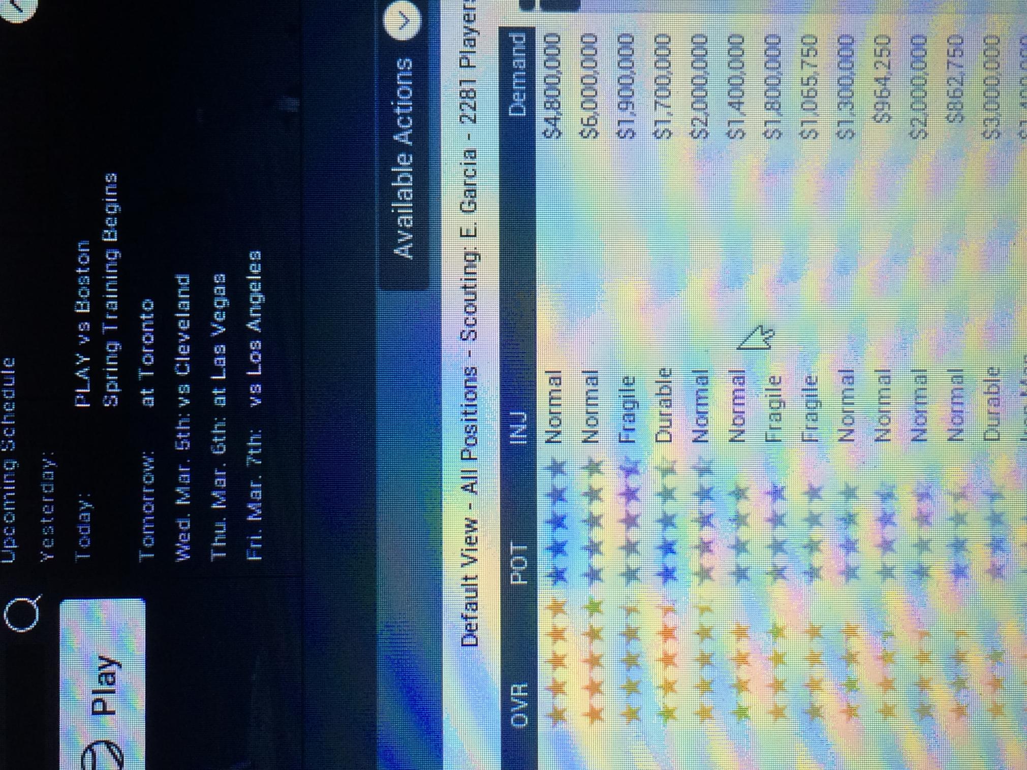 A few players (4-5) you see here were asking for amounts double to triple these amounts when FA hit the November before. The top player is a 30 year old closer who put up great numbers. He was asking for, I believe, 12 million/season just 5 months prior. He's now asking for about 8M less and he probably won't get that, if he even signs. I guess I'm not totally sure why they're not signed. The teams just don't have the money? I just happened to be at this stage of my game and took a screen shot. This particular year isn't all that bad for what I'm talking about, as I said there are only 4-5 of them. Some years have 8-12 guys who have to significantly drop their asking price just to get signed, and if they do sign, it's at well below market price for how good they are. So, teams are getting an All Star player at 1/4 of their market value. It's just not realistic. I can't believe I'm the only one w/ the issue. Perhaps some of you don't know what you're looking for? |