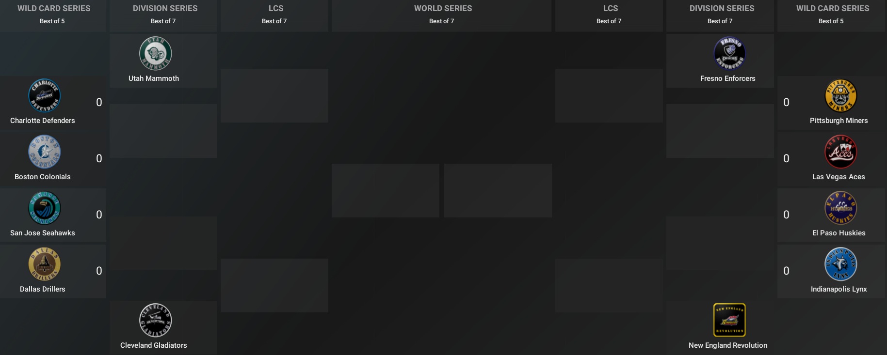 Boston and Cleveland went the distance with the Colonials winning game 7 6-3. OF Vittoriano Azzopardi slammed 4 HR's to win series MVP honors after winning the Wild Card round MVP honors NLCS Las Vegas downed El Paso 4-3 in game 7 to win the series 4-3 with OF John McDermott hitting 2HR's and driving in 6 for series MVP.