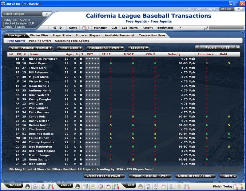 I decided to change all my minors to unlimited and not one single prospect was released this time. I still don't get how come players that are drafted are undervalued and tossed aside. I checked one teams rookie ball team and they did not have 1 player greater than a 1 star: but managed to dump all of their top picks@@: ... Ok so I guess it's official roster limits (especially rookie ball) are a definate problem. |