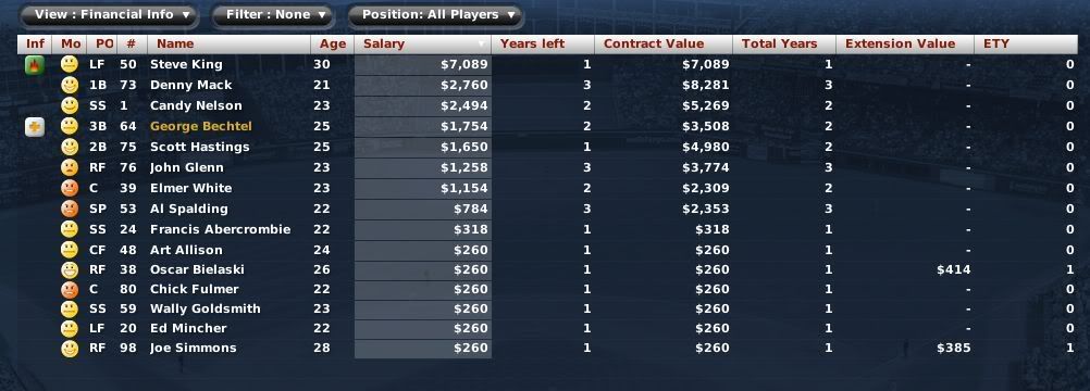 Here is a shot of the (correct) salaries on the roster view: