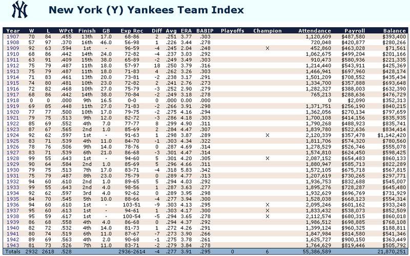 Officially, the Yankees were on strike that year demanding a change in the tightness of the baseball. In reality, I forgot to regenerate the schedule, so the Yankees didn't play any games in 1918. Most teams were limited to around 140. Last edited by pbar25; 01-10-2009 at 03:07 AM. |