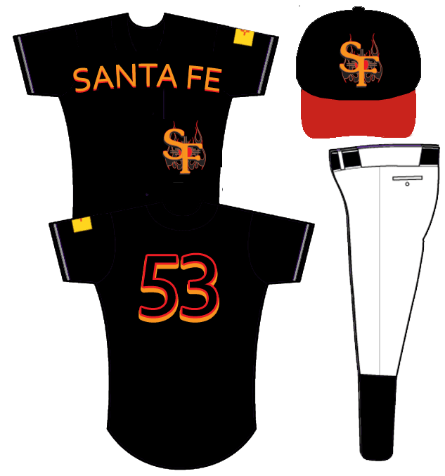 hey guys those look great my wife will love them cant wait for her to get home from work so I can show her I have another request though sorry about having to ask I've tried to do them on my own but I just cant get it right so if someone could make me cap home away and alternates of the Santa Fe Fuego from the Pecos League I would appreciate it thanks for the Indians set and thanks in advance for the fuego