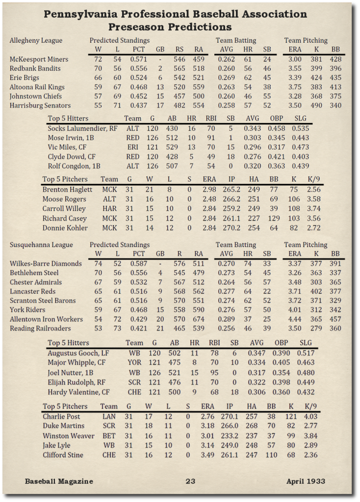 Since I am a Reds fan in real baseball, I'll root for Lancaster here....looks like they've got some awesome pitching and not much hitting.....