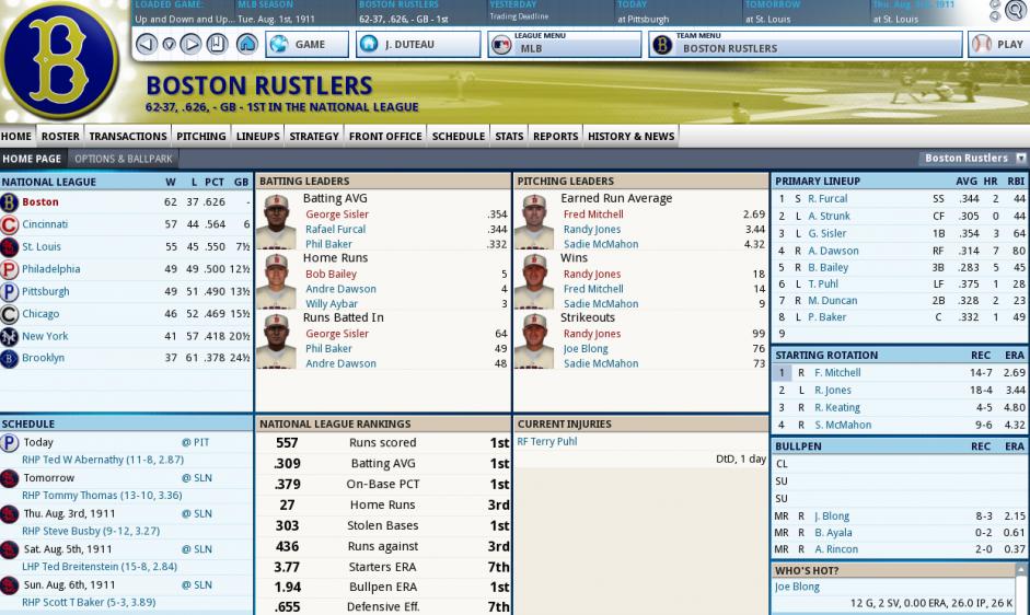 We keep rolling along as we went 17-11 in July and now sit at 62-37 and are 6 games up on Cincinnati and 7-1/2 on Philadelphia. There is a little concern over who our 3rd and 4th starters are as the manager keeps moving things around there. Mitchell and Jones are a solid 1-2 so that is good. I truly believe that this is our year.