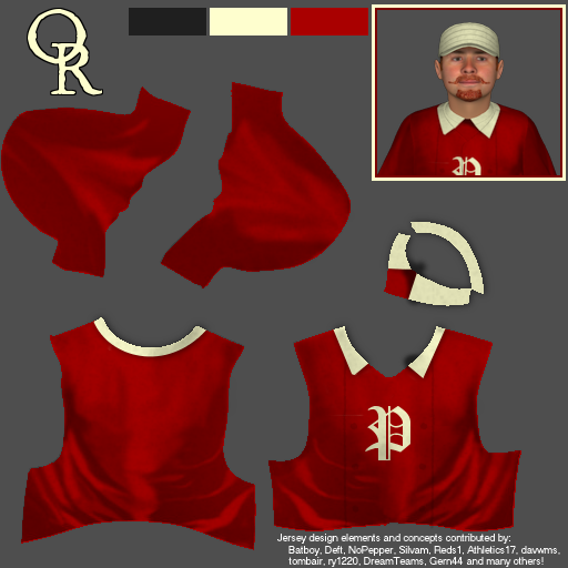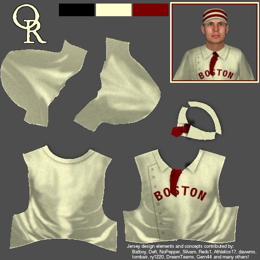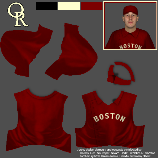 I'll be putting everything I make up here as I make them. I'd like to thank NoPepper, Deft, Gern, TX Ranger, DC Helper, Silvam, cephasjames, Bobble and everybody else who has contributed all sorts of awesomeness to this game and really allowed everyone to breathe some life into their baseball worlds. I'll kick this off with the Federal League's inaugural teams in 1876. Boston Reds, 1876-1882 (based on the Boston Red Stockings) ![]() Home Uniform: ![]() ![]() Away Uniform: ![]()