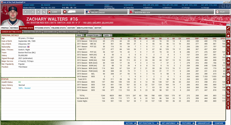 On the point, I think it is too easy in some ways to assemble a dominant team. It's getting harder with every iteration - I found with OOTP 10ish, you could fairly reliably take the worst team in the league and make the playoffs within 2-3 years, and be a solid WS competitor in 3-4. With the recent game, it was easily 4 or 5 years before I made the playoffs as the Astros, and they are lucky that they actually have a few good prospects and no insanely bad contracts before. I didn't "cheat" while making that team - no editor, hardly any waiver wire pickups. A few good rule 5 picks helped me along, and some big deals. I'm not sure how to make it harder on us, without having the game resort to moves like making our prospects bust at a rate 3x the league average. |