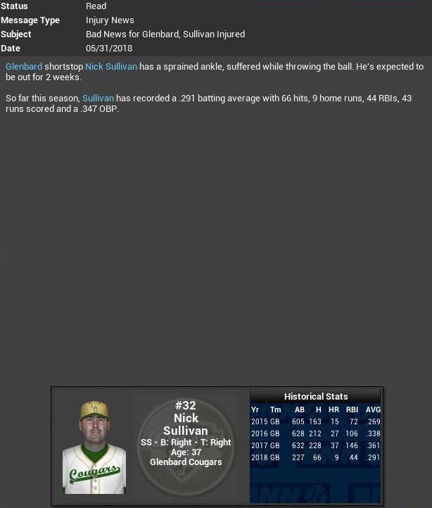 Very good week. Struggled vs the Cubs on Friday losing ion 10 then winning in 10 on Saturday. My former SP (from Willowbrook) Brad Stupec pitched great against us. Hopefully we win 2 of 3 vs them wearing out 1983 tribute uniforms on Sunday. Should have Trapp back in a few days.