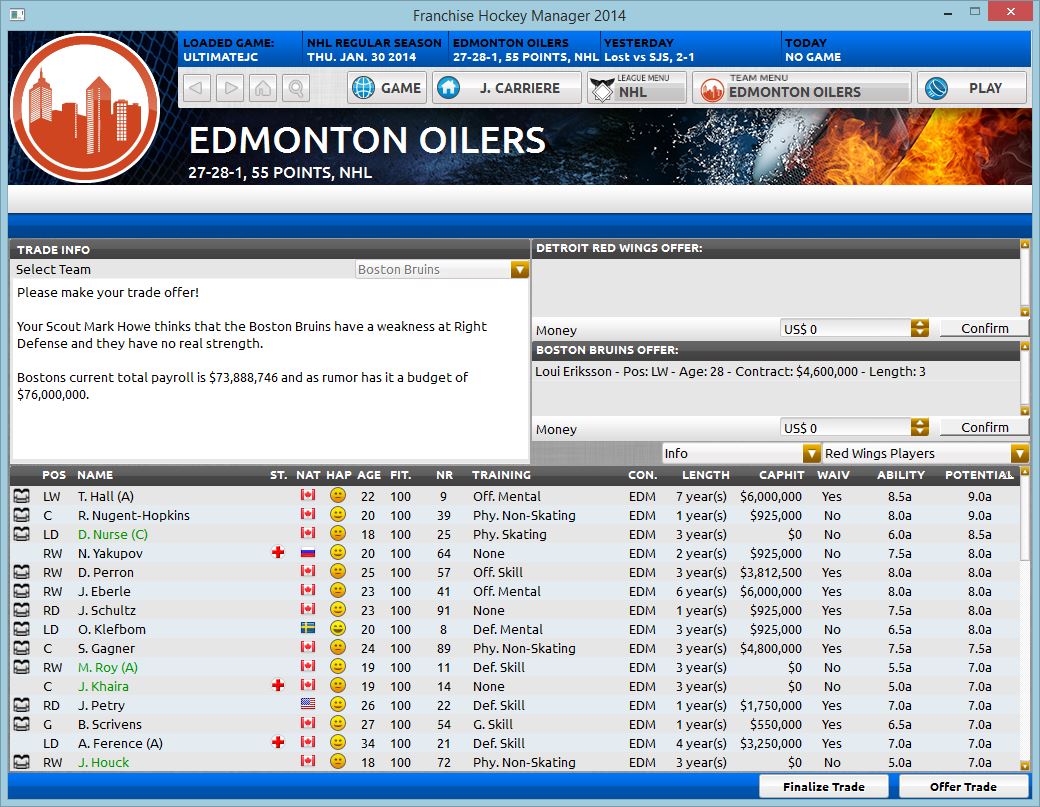 Also another thing I found. I switched from Detroit to Edmonton. While in Detroit I was working on a deal with Boston. I switched to Edmonton and want to try and acquire the player from before and it still was showing up as Detroit. See screen shot. |
