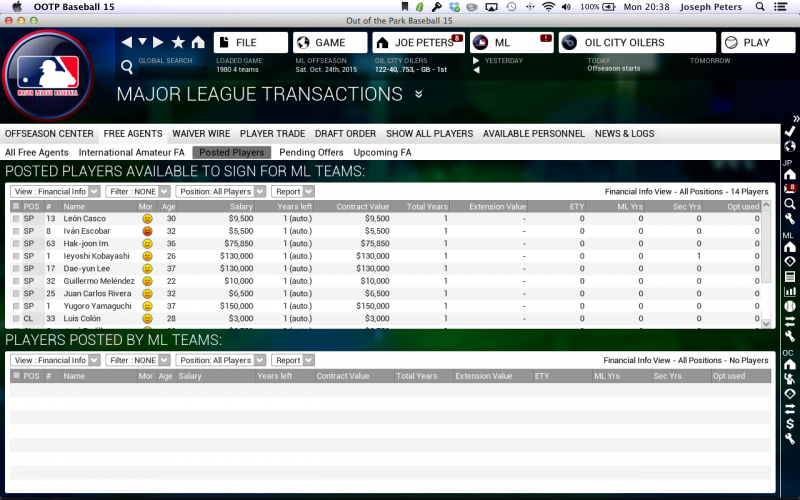 As for postings, they are happening in my league, though I don't know the frequency. After ten years, I tried searching through all Japanese players in the US to find them, but with all the International Free Agents and Scouting Discoveries, it was hard to find. I did finally stumble on one, a fringe Japanese reliever who was posted for close to the max value and for some reason signed by the Cardinals, where he proceeded to not be very good.