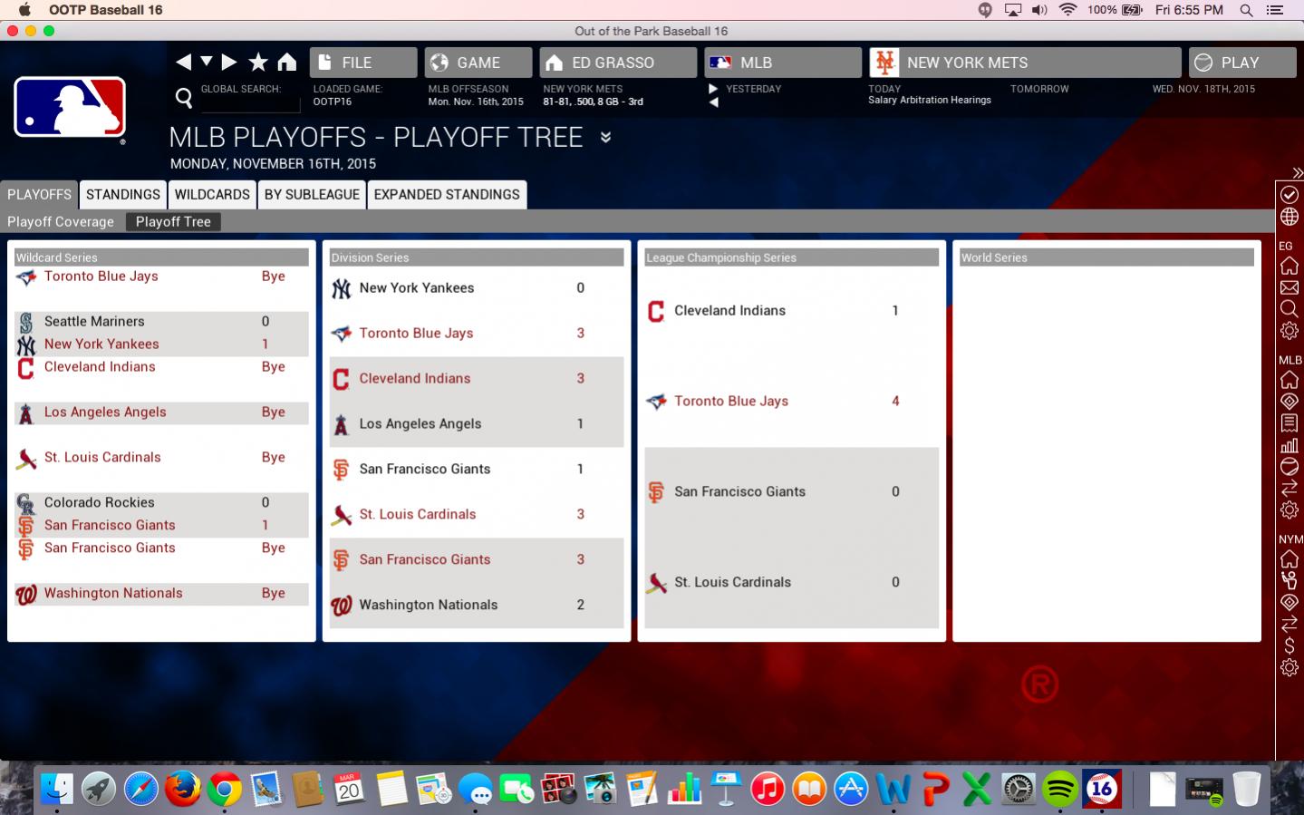 ALCS sim'd fully, NLCS never started; hence no World Series. Game went into post-season mode on the right date, though. |