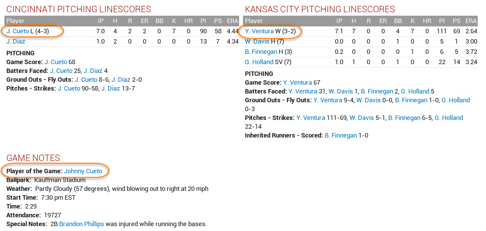 My losing pitcher just got player of the game after giving up 2 runs, where as the the winning pitcher gave up no ER and they won the game.