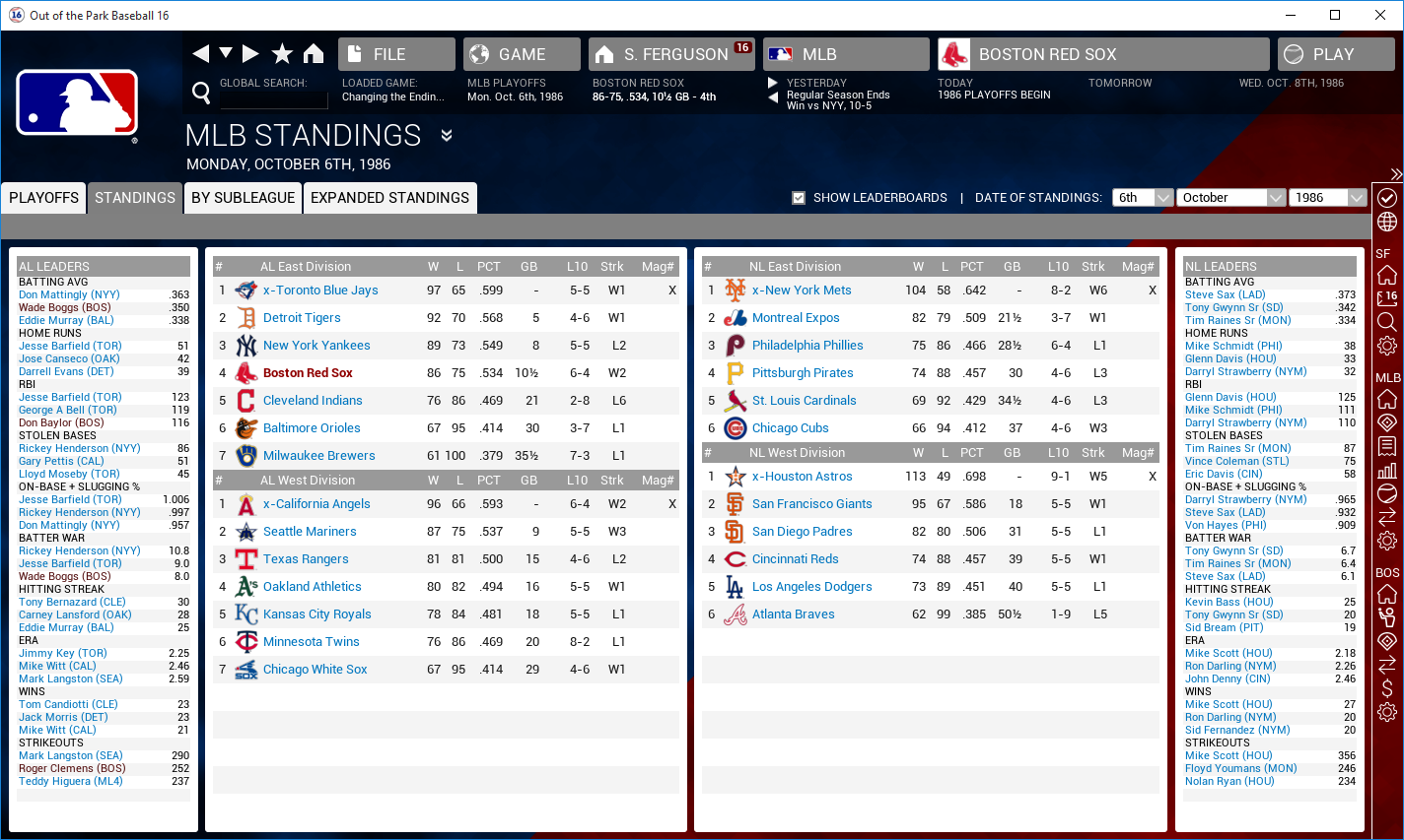 it is interesting to note...that these same four teams will probably make the playoffs in my 1986 mets dynasty...but MY outcome will be different!