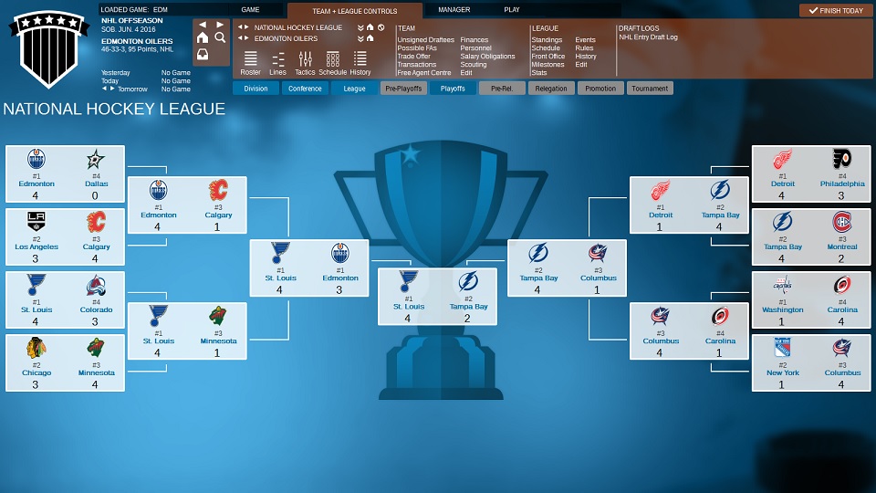 Playoffs are done. I lost in WCF to presidents trophy winners (122 points) and SC champions St. Louis Blues. I won GM of the year and McDavid was rookie of the year.