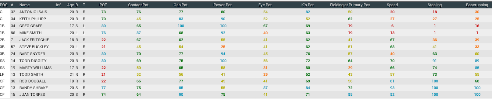 Last Name: Griffin Jersey #: 13 Position: 3B Bats (Left, Right or Switch): R Throws: (Right or Left): R Place of Birth: South Bend, IN Facial Type (African, Asian, East Indian, Caucasian, Hispanic): Caucasian Height: 6'0 Weight: 210 Player Quality (Random, Legend, Star, Good, Average, Bench, Scrub): Random |