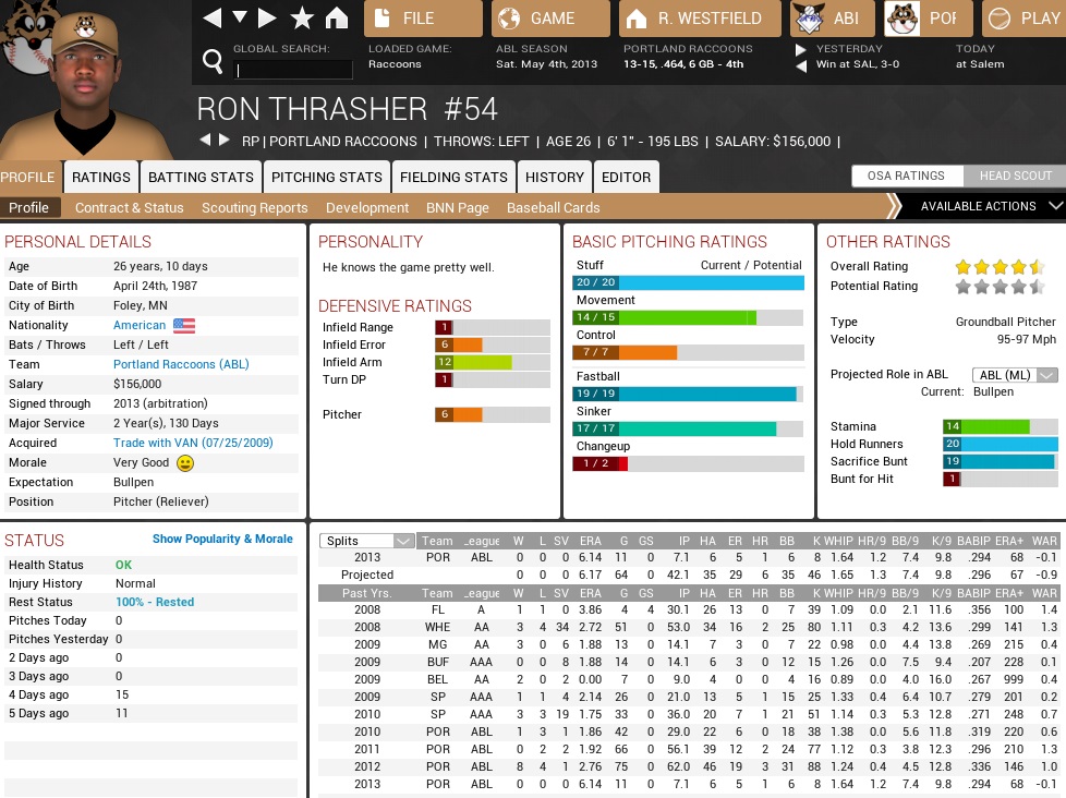 I passed on this guy when he showed up in the 2044 Free Agency class bc I already had a good bullpen at that point. Tonganoxie didn't, turned him into a starter, and reaped the benefits- but never won a title with him in the staff. |