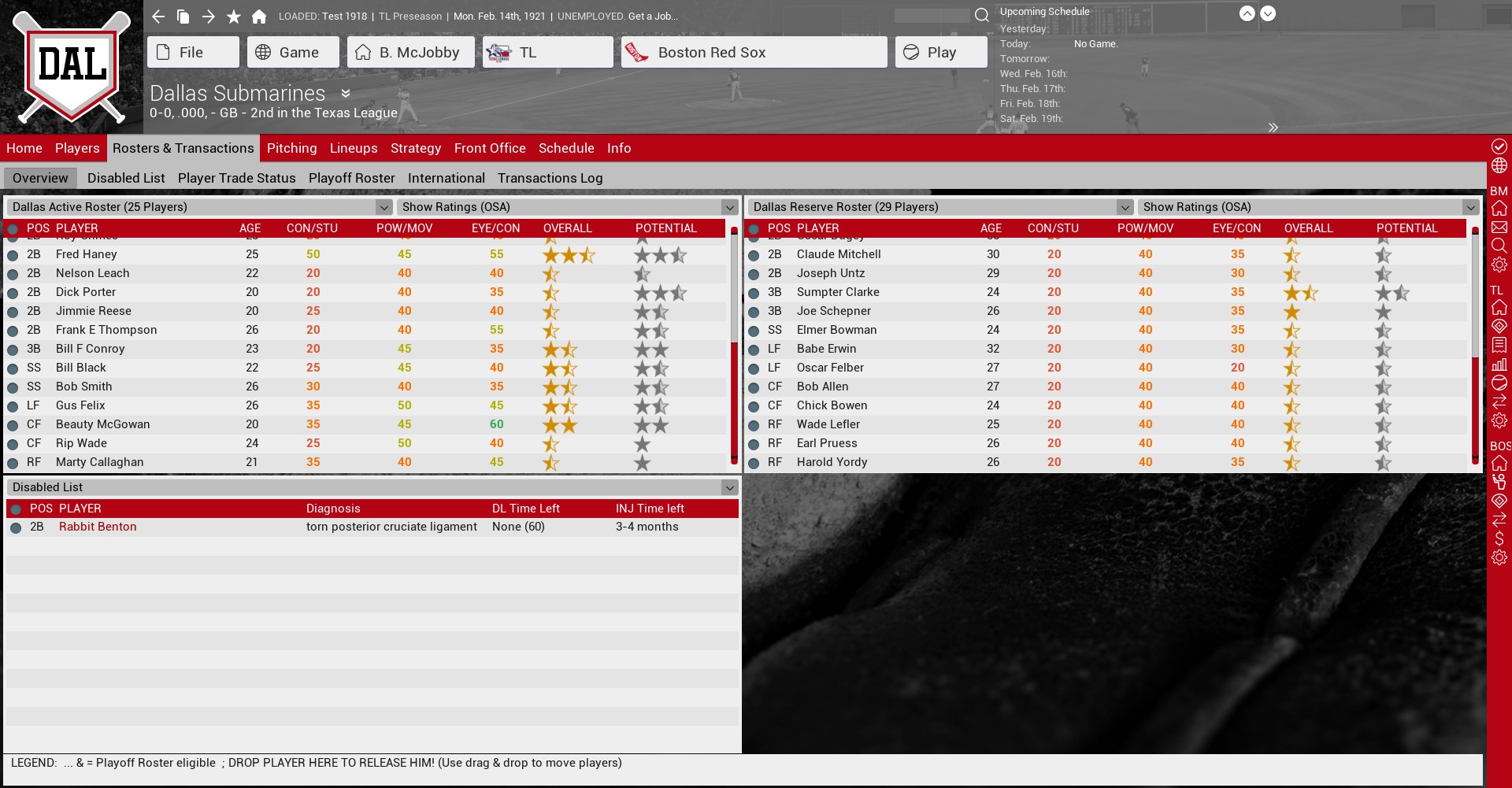Also, it was an Oakland A's sim and there were two Jose Canseco's. Mine wasn't as good as "The Chemist" one that appeared in the draft later that year. Thanks! |