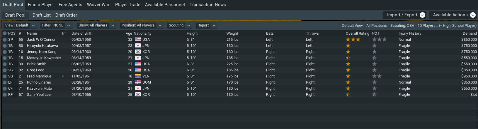 That's what I thought ... I moved on, but in 1981 I had just one player in the draft before the number increased to 29 players in 1982. Do you think there is a chance that the missing players eventually will show up ? Or are they lost forever ? BTW, I ran the tests with your database as well as the "original" database and had the same results, so this obviously has nothing to do with your database.