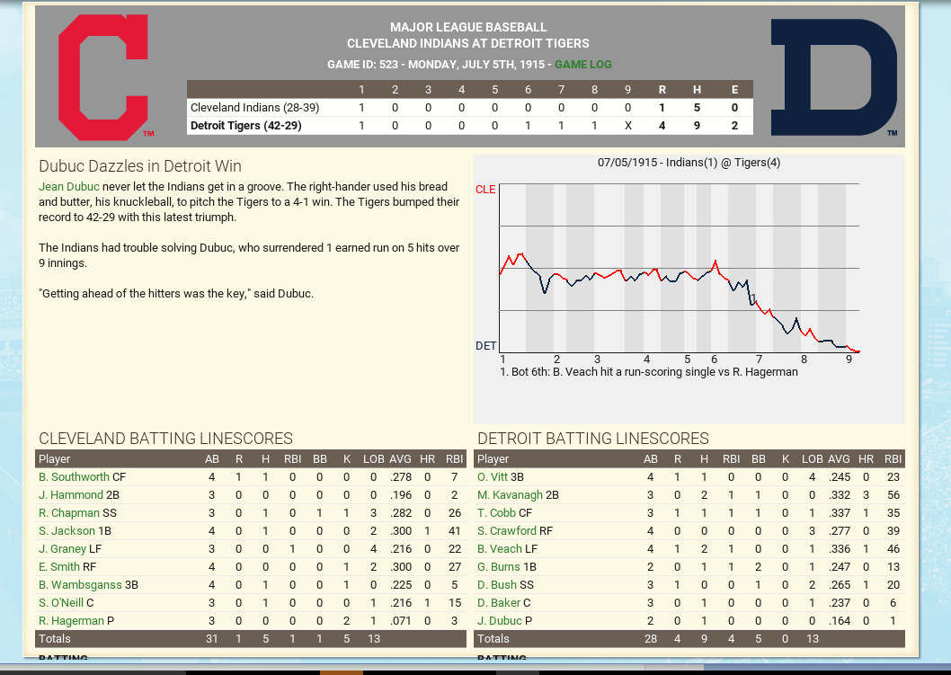 This one falls into the heartbreaker category. Tigers have to face Faber (you know, yesterday's Sox hero) in the 9th. He walks Cobb, Crawford flies out, and then on consecutive ground balls the Chicago infield boots them. With the sacks juiced, and one out, Veach hits a ground ball to the infield that is playing IN, and it's 6 to 2 to 3, game over!