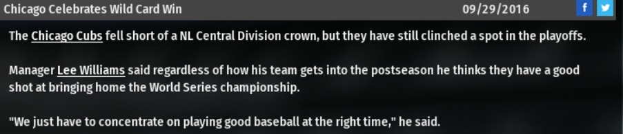 I just caught a quick glimpse of it... But in your "Did You Know" section it mentioned the 1908 Cubs title as it's last one.