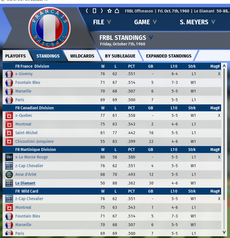 One more thing, here are the standings for the league after the first season. Our franchise can only go one way, I guess. I've heard that many scouts think the Diamant minor league system is the strongest of the 12 franchises. I've asked for the report and will share it if they give it to me.