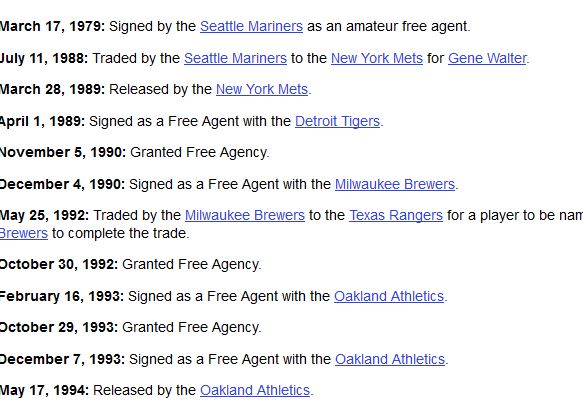 Actually, he was born on May 27, 1963, so he would have been 14/15 years old during 1978. 15/16 in 1979, and so forth. He debuted in the majors just shy of his 19th birthday in 1982. If he'd been in any of the known 1978 drafts, he might have been 15 years old by any or all of them, depending on when they were during the season, after all. From what I have found out, he was a non-drafted free agent before he joined the Mariners' organization and began to play for their Northwest League team called the Bellingham Mariners, and played there until playing for Wausau in another league, according to his playing record's page on BB-Ref. And eventually he came to debut in the Major Leagues, as already stated, in 1982. CD out.