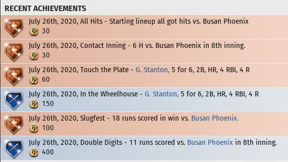 Well, we made our quota for the month of 15 wins. Still holding on to the WC lead, but not sure how long we can hold it. I've only been able to add 1 player so far this season due to so few achievements and the WC contenders appear to be upgrading much more.