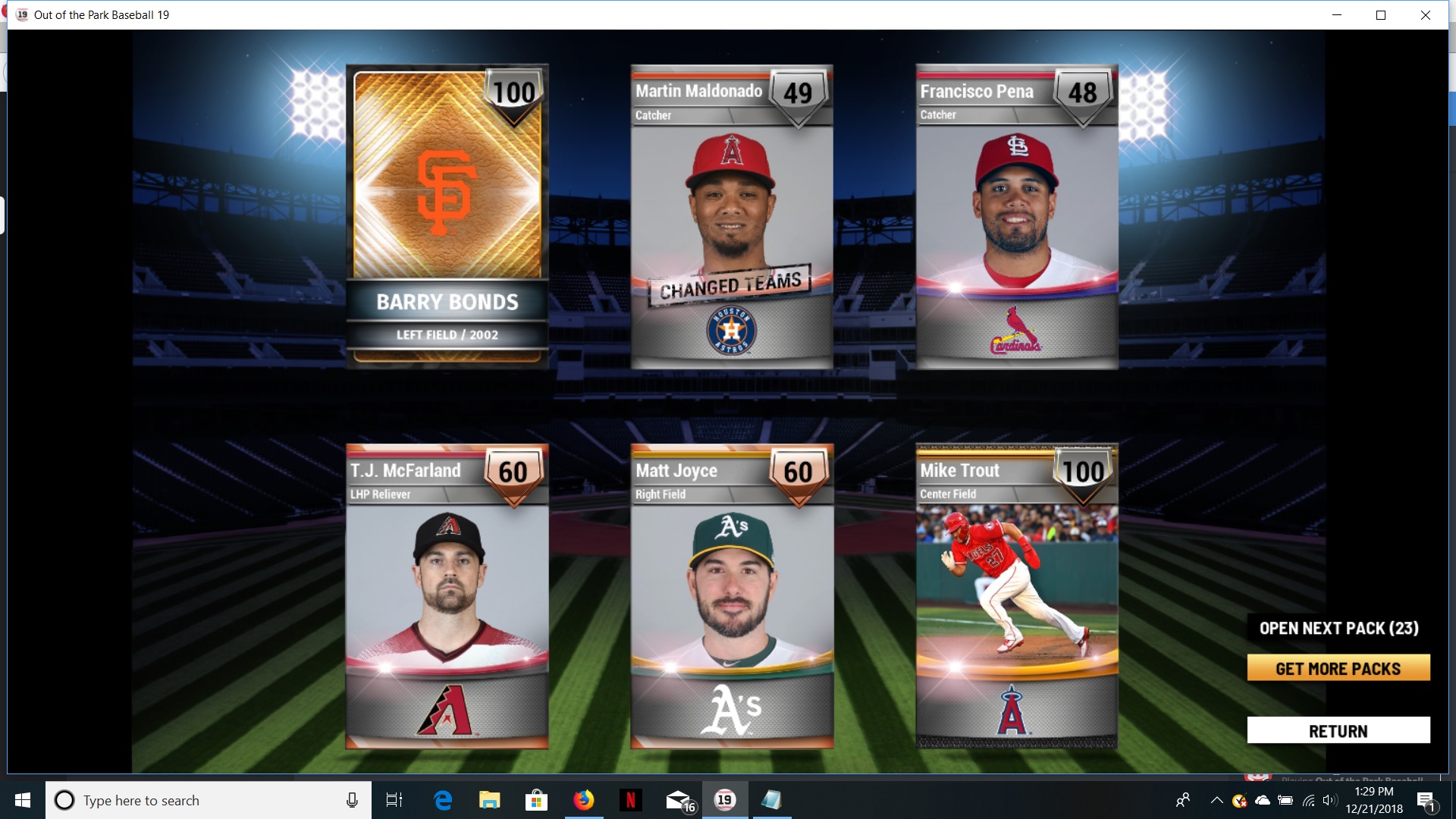 I pulled a perfect Trout yesterday after buying 5 packs. In that same pack I believe I got a Diamond Darren Daulton which sold immediately in the auction house for I think it was 14k or something.