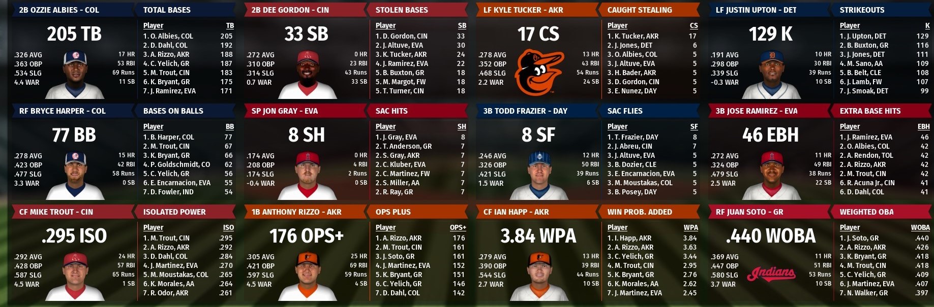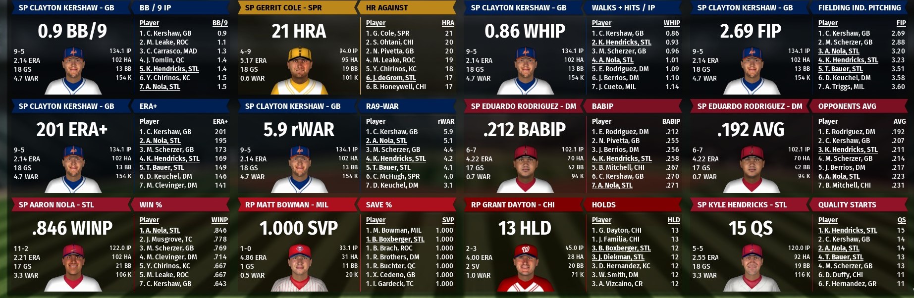 While Godley has been a decent No. 5 starter for the Walkers the past two seasons -- he's 5-5 with a 5.24 ERA this season, after going 8-10 with a 4.75 ERA in 2018 -- there are concerns on if Jacob de Grom, whose has seen a major falloff from his Cy Young winning 2018 campaigns, can hold up in the postseason. de Grom is 9-8 with a 4.66 ERA this season, after going 14-5 with a 3.07 in 2018. But that's why I have tried to keep the payroll down by drafting young players when the league formed. Martinez adds another top three starter to the rotation. He's 5-7 this season with a 3.62 ERA. He'll be a little bit a hit to the payroll -- making $13.5 per season -- but he'll be a free agent after the season. So we don't have to bring him back. A lot will hinge on how de Grom pitches down the stretch. |