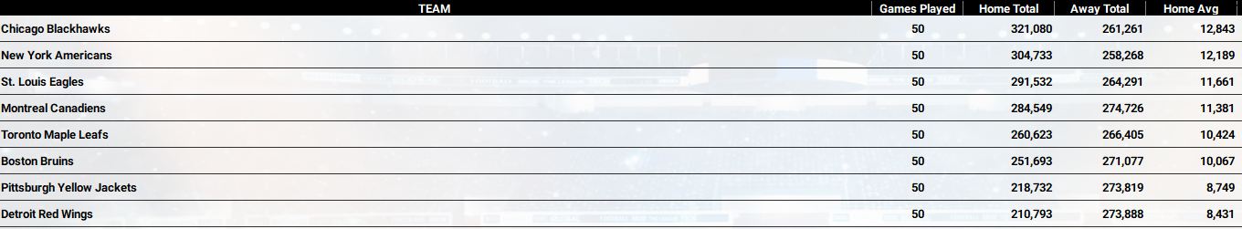 St. Louis finishes first overall and narrowly misses winning its first Cup (as St. Louis) losing to Pittsburgh in 3 games. Detroit’s Shutron leads the NHL in goals and points. Boston’s Lachance leads in assists. Detroit’s D-man Mathys Vielleux wins MVP and defenceman of the year. Montreal’s Vincent Tremblay is named best goalie. Pittsburgh is sold to a local ketchup company that briefly contemplated renaming the team the “57’s”. Thankfully they stick with Yellow Jackets. Strong corporate ownership here and in St. Louis will really help secure those teams for the long term. With the War over attendance has rebounded sharply around the league leading to talk of expansion. The NY Times is reporting that Philly, LA and San Francisco are all interested. With improved finances we (us and the 4 non-Norris teams ) could dig really deep and offer to pay off the Bruins debts to Norris, thus reducing his influence to 3 teams out of 8 and allowing us to control the direction of the NHL. So long as we choose expansion sites very carefully we should be ok. |