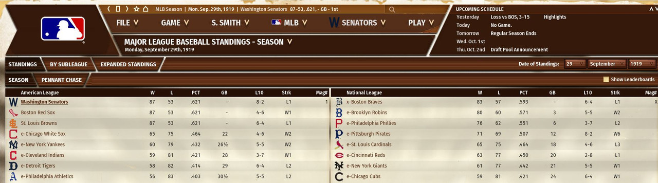 End of regulation in the 1919 Season with a three way tie between, Boston, Washington and St Louis. What would be the fairest way to do this.