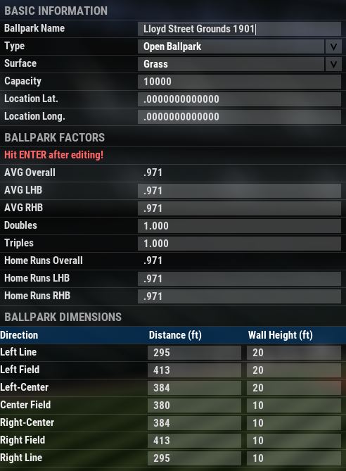South End Grounds Washington Park South Side Park West Side Park Hilltop Park Thanks for your hard work! |