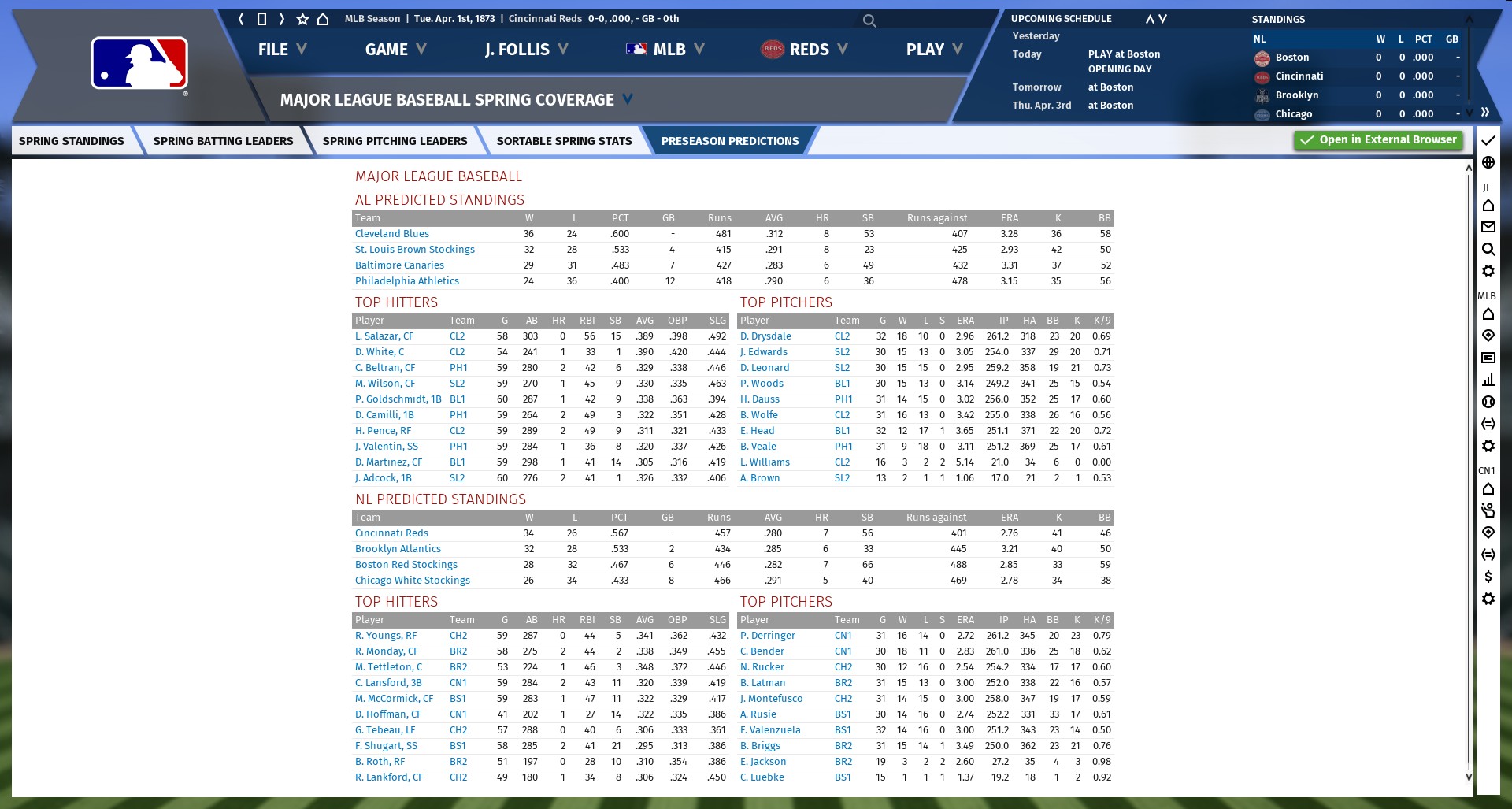 Preseason predictions for 1873 MLB and SBC seasons. That is all. CD out.