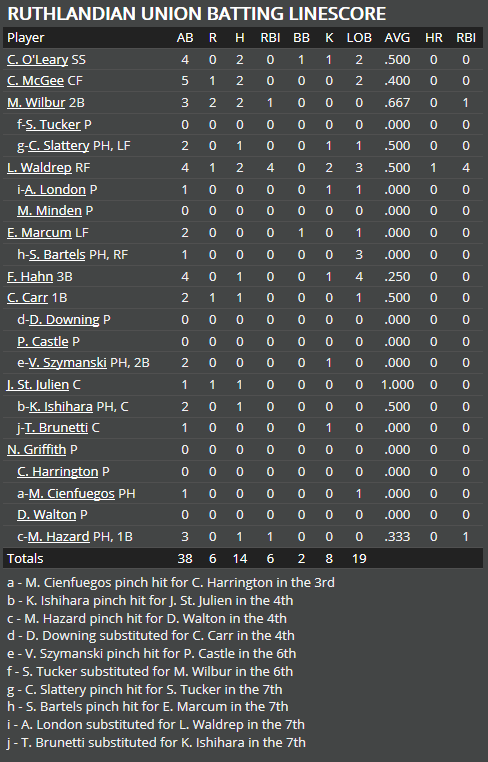 Tycobbian Union Team Batting and Pitching Leaderboards