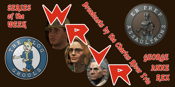 The IV Bag with George, Anne, and Rex G: Welcome everybody to today's random junkpile post-series broadcast. I am your host George Cooper. Joining me today are Anne Hargraves and Rex Goodman. And you are listening to "The IV Bag." We watched in our first morning start of the season as The Slog Ghouls defeated the East Boston Prep Assaultrons 11-4. With the win, the Ghouls avoided being swept and pick up their record to 20-19, just half a game back of second place with the Salem Witch Hats who are trying for the sweep this afternoon at Nordhagen Beach. The Assaultrons drop to 18-21, which will leave them in fifth place in the Brotherhood League, but they are only four-and-a-half games back of first place Finch Farm who are trying to avoid being swept at County Crossing. Anne and Rex, we have an exciting evening planned at Easy City Downs tonight, so let's jump straight to our weekly awards. Take it away, Anne. A: Thank you, George. Yesterday's game was the only one we saw where the first team to score ever trailed, meaning we only had one come-from-behind victory this weekend. These baseball bums were hardly ever on the tail end of defeat; therefore, let's be creative with our Bottoms Up Award. That will go to the go-ahead hit in Game Two when the Assaultrons ended up winning 10-7 after a late Slog push. Trailing 3-2 at the time in the bottom of the fourth, Frank Clawdodger hit an RBI single to tie the game. With two outs and the bases loaded, Joe Ransom hit a two-RBI single off The Slog starter Gary Estate. That hit ended up chasing Estate from the game and putting East Boston Prep on top for good. Therefore, Joe Ransom is this week's Bottoms Up Award winner! R: I rue the moment when baseball will cease to exist for a time in the tides of August. Yes, yes, playoff baseball will discover its feverish pace, but there are only two from each division moving on. Therefore, we lose two-thirds of the hearts and souls of teams fighting for another day. The Slog may be one of those teams that are close but minus their San Francisco Sunlights. Therefore, this week I nominate and reward The Slog's left fielder, Po Greenzone, for the Sportiest Sport award. He took the bat on his shoulders and swung the Ghouls to victory today with three hits and three runs batted in. G: Thank you both. Let me now tell this week’s show with the Outstanding Player of the Series. That player is Jarrett Metalboz of East Boston Prep. For the weekend, he had six hits in 13 at bats. Two of those hits were doubles and another was a home run. He scored six times and knocked in five, as well as walking once. This week's show was brought to you by Easy City Downs. "When you're in town, settle down with Easy City Downs." I've got my money on The Boston Blaster tonight. What about you Anne and Rex? A: Let me see the card. Based on the names, I'm not sure. Maybe I'll root for Lady Lovelace. R: I shall place my money on the one that speaks of the arts and passion. Since the references of all these racing robots are beyond my base of knowledge, my random finger point tells me it will be Iron Maiden. Excellent. G: This will do it for "The IV Bag" with the Charles River Trio. Our destination next week is University Point when the Deathclaws take on the Quincy Gunners, who I believe are being featured on Diamond City Radio this week. Our game is the first complete today, so we know going into today that Quincy is 18-20 and the Deathclaws are 19-19. It looks like that will be a matchup for trying to work their way up into second place since the Warwick Mirelurks are currently 26-12. Before we head to the tracks, let’s close out this week’s show with Billie Holliday and "Crazy He Calls Me": https://www.youtube.com/watch?v=_mitLcbHHz8