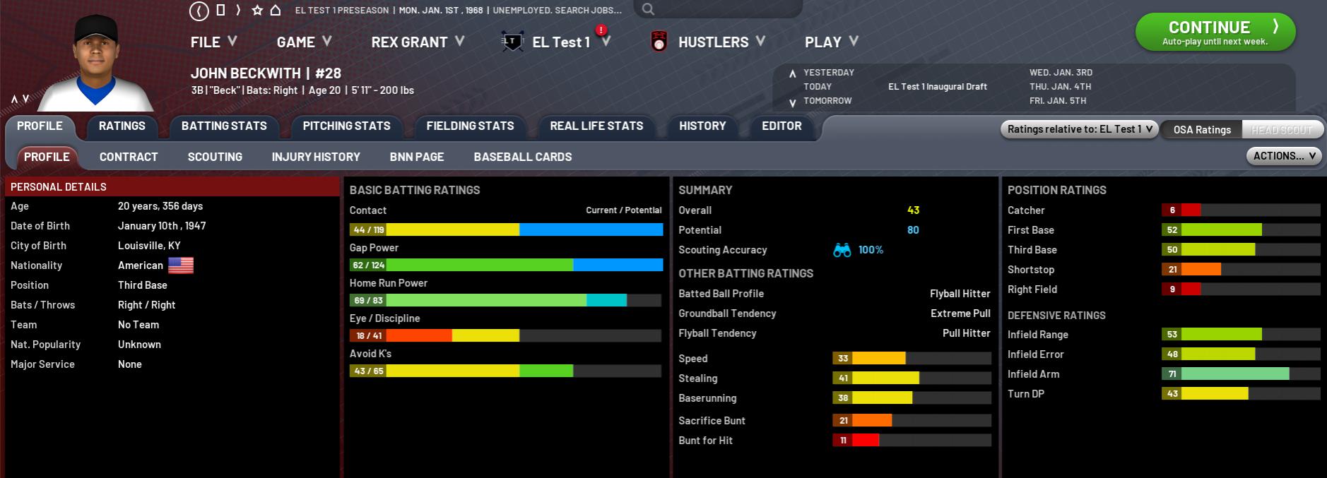 Many, many thanks for your thoughtful response. I’ve taken the lead over the AI in signing Negro League players for the Phillies and A’s. Now I see why. Without proper ratings, the Negro League players don’t look that attractive as free agents to the AI. Plus they can be tenacious in their demands for salary and bonus, from teams suffering through the Depression years. So my next task is to use your guidance to recalibrate some of the mid-level players who at very least could fill out the weaker clubs. Plus there are guys who were quite young in 1938 but starred later. They might get signed into the minor leagues and then develop as I go forward.