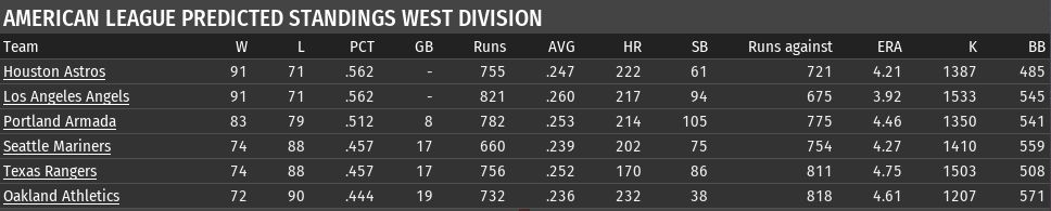 I'm extremely confused by those predicted standings which have you scoring 70 more runs than the Astros and allowing 50 less runs, but finishing tied in wins.