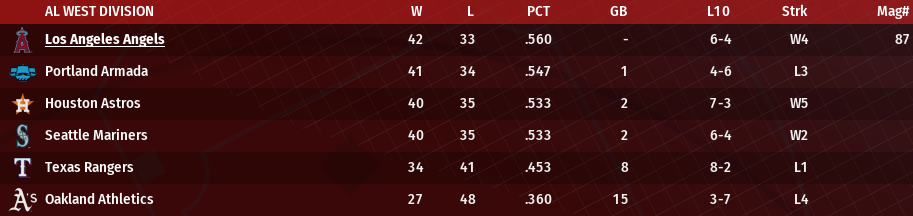 ![]() Finished June 14-11, and now 8-10 in July. Feels like some bad luck. I did swoop for the Seattle pitcher: ![]() He's been a bit rubbish for the Mariners this year, but his first four starts in LA have shown some promise. |