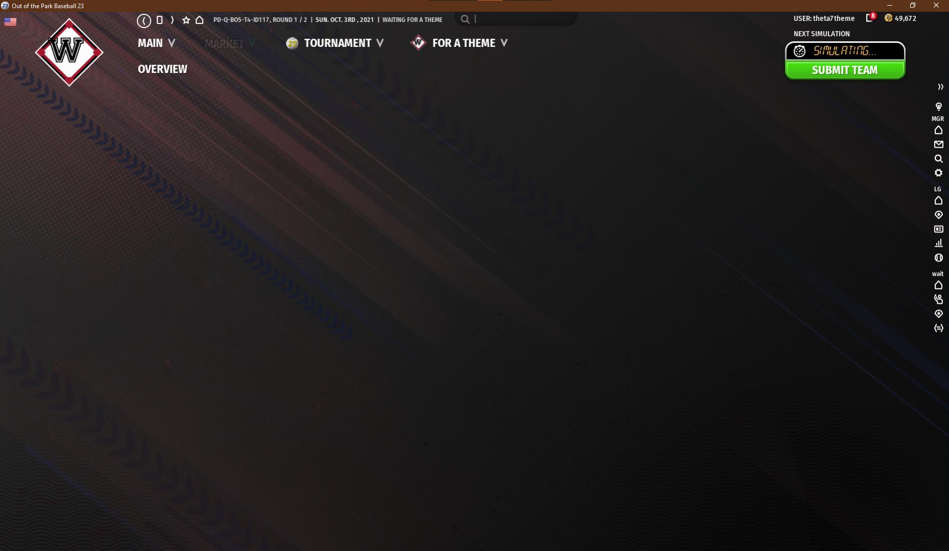 Once the Perfect Draft is underway, the Overview / Perfect Team Home screen shows packs in my inventory, which I believe is not the case in OOTP22. They have the usual trembling behavior when I hover my cursor over them. However clicking doesn't lead to the card opening, as it shouldn't as getting new cards onto a PD roster would be weird.