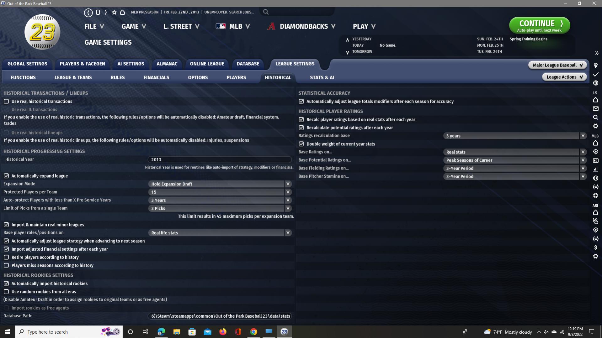 C:\Program Files (x86)\Steam\steamapps\common\Out of the Park Baseball 23\data\stats My Steam Database path line is in a different screen. Strange. |