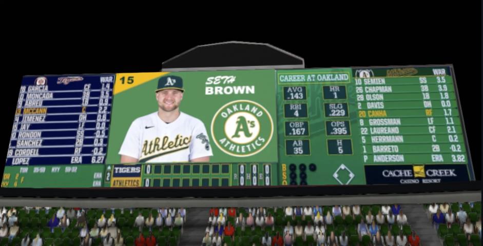 Added some upgrades to Oakland Coliseum today..... Ray Fosse Patch in Left, Xfinity color, Dewalt to Craftsman in Right, Scoreboards (Day Sean Murphy / Night Seth Brown) etc...
