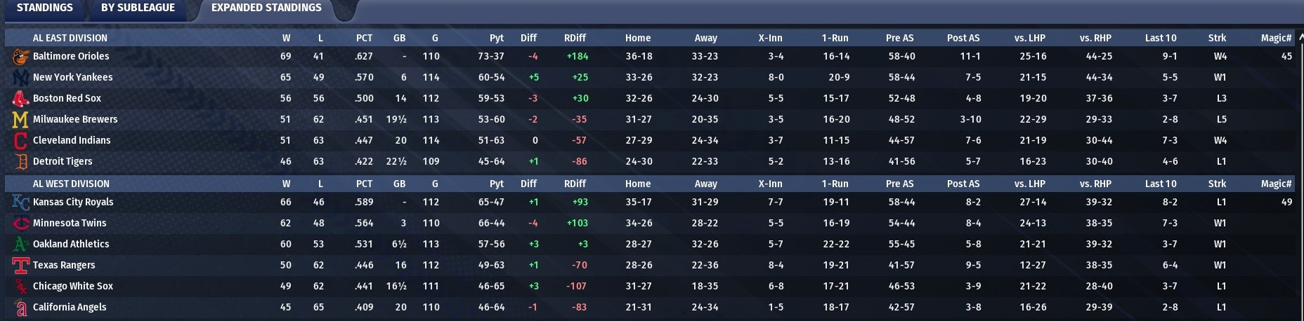 MLB 73: August 20 -- Week 18 -- Awards and standings