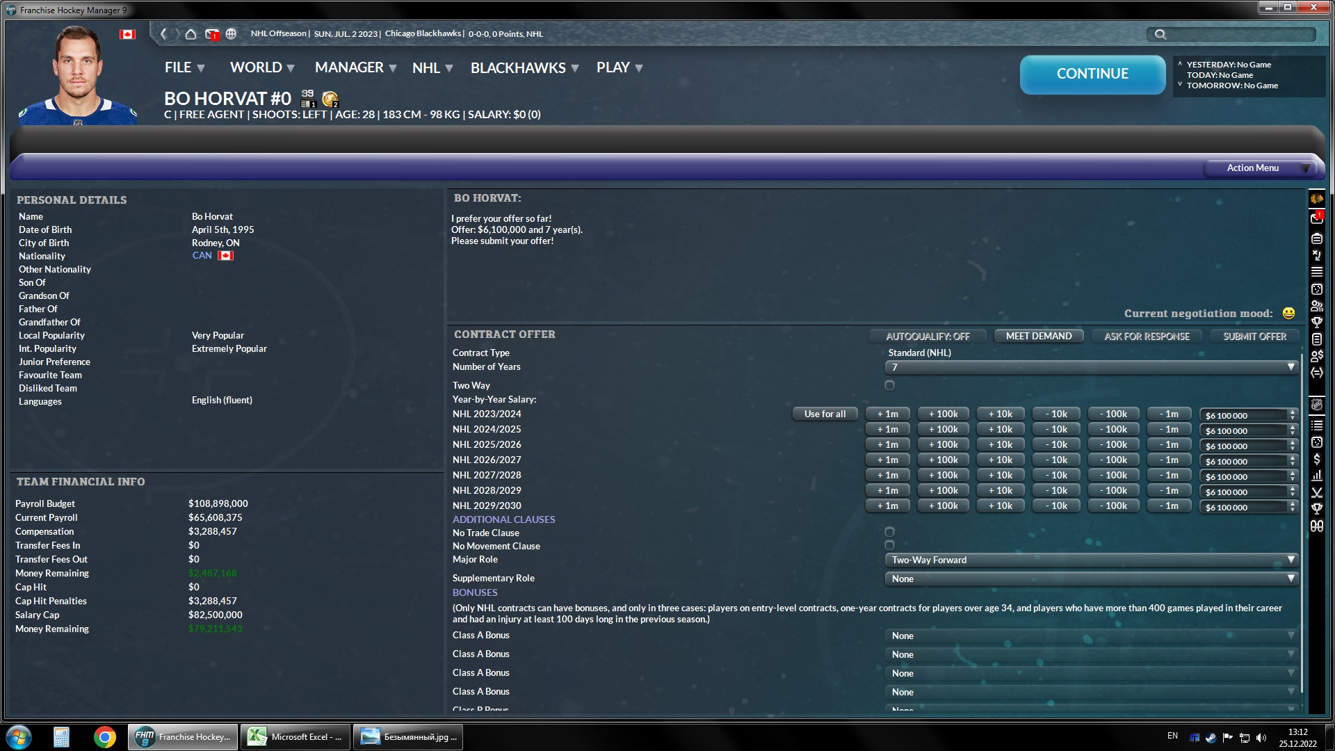 He is a free agent and he is the best free agent. 100% competitors will offer him more than I give, I would like to immediately give more and not bargain and not waste time. But I can no longer increase an already made offer on the same day. Although when FHM9 just came out, I could do it.