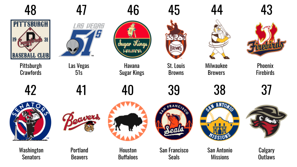 This post is the third of five counting down all 48 NABF teams. Each entry will include vital stats, a short history, and its best players and season. This entry will cover teams #24-#13.