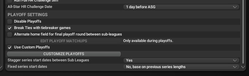 Customizing Playoffs in Fictional League