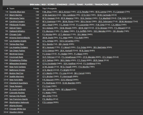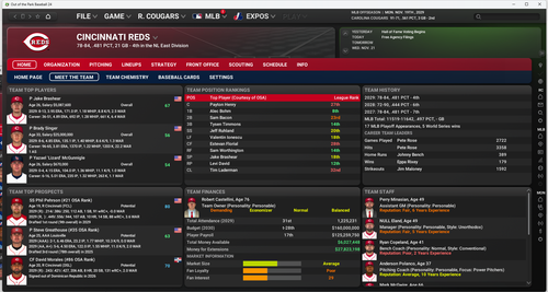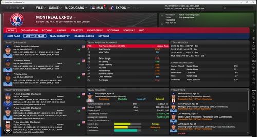 Statsplus: https://atl-02.statsplus.net/spidertack/ Reports: https://atl-02.statsplus.net/spidert..._155_home.html Rules: https://docs.google.com/document/d/1...RVp7ofGCo/edit We use Slack for our league comms Myself and another GM are Co-Commisioners so we have redundancy and ensure our sims are always run at the scheduled days. Tuesday-Wednesday-Thursday-Saturday-Sunday sim dates (offseason daily) Notable points: 1) We have just expanded 2 teams (Montreal and Carolina) and re-aligned divisions to 4 divisions of 8 with 2 division winners and 4 WC qualifying from each league. 2) We shut off scouting discoveries and make an IAFA pool 600 players. The player demands are shut off and teams can trade IAFA Budget space (to a max of $8 mil per team) to create a more realistic July IAFA signing period. (IAFA Pool also drops 100 days before July, so like the draft there is a scouting window before you make decisions on signings/trading space). 3) Scouting settings are changed from default, here the ratings are 100% based on talent and not 65% talent and 35% stats (OSA also set to low accuracy) so in effect, scouts are ALWAYS more accurate than OSA which is now relegated to Baseball America level of accuracy where its way behind the actual reports for the most part. Also, because its based 100% on player talent any player developments or nerfs are recognized instantly once your scout is able to get a new report which causes more volatility especially with amateur players. (Random Talent Change is set to 1.000) We are in need of a new Reds and Expos GM. The Reds have been a revolving door of instability with about 5 guys at the helm who have had different plans from winning to rebuilding so they havent had a clear direction. The previous GM found Spidertack was "too engaging and active" for him to keep pace with so stepped down, but did manage to clear the books of most of the bad salary. The Expos are entering year 5 in existence, after the Nostalgia of the Expansion wore off and the reality of having to build the team up from scratch kicked in the Expos previous GM got less engaged which made the situation worse for an active league where everyone is all trying to get better. |
