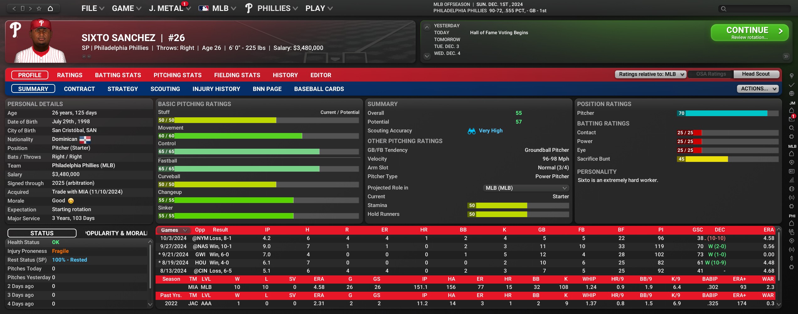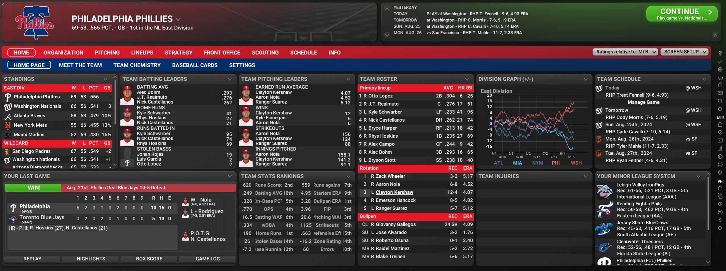 2024 saw some changes but a tightening of the budget by ownership meant no "big splashes" in this off season. Through June the team struggled to reach .500. A post injury Bryce Harper struggled to hit over .220, leading some to say the three time MVP was done. Zach Wheeler also fighting his way back from a serious injury posts an ERA over 5.
