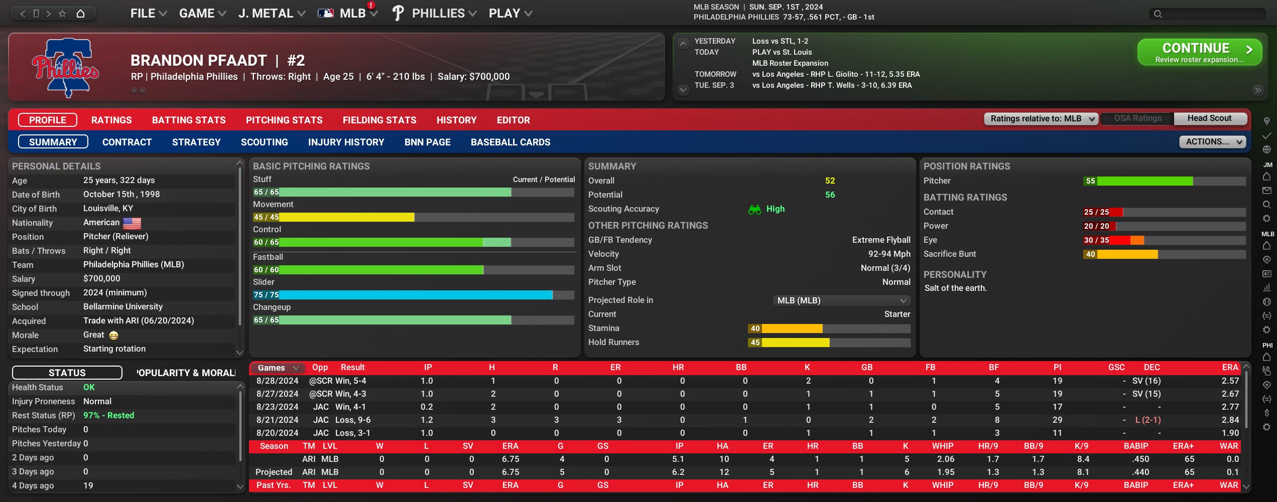 The Phillies sent disgruntled veteran Yu Darvish to Arizona for Brandon Pfaadt (6/20/24.) At AAA Lehigh Valley Pfaadt has been very effective (2-1, 16 saves 2.57 ERA.)