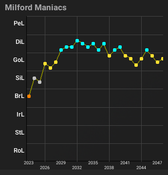 This is not to say I didn't have fun - it's just that investing the next 25 weeks till the release of v25 just isn't in the cards for me (pun intended). And 5 visits to Diamond were a high-point as well. To summarize, here's my history graphs and active rosters for my three teams as they currently stand. I'll probably drop in each month and open packs to see what I might get, but otherwise will move on to other interests (including Starfield & Fallout: London) until v25. Misc. Comments; Baltimore was the team that had the best initial pull and the one I invested 6 months of PT+ in. Cleveland was the worst initial pull and I never did get a break on Mission success or pack pulls. Akron was the middle team in initial pulls, but had a lot of luck with Missions and Packs. Good luck to all that are still in the game, and see you next "season" ![]() HRB Last edited by HRBaker; 09-17-2023 at 12:48 PM. |